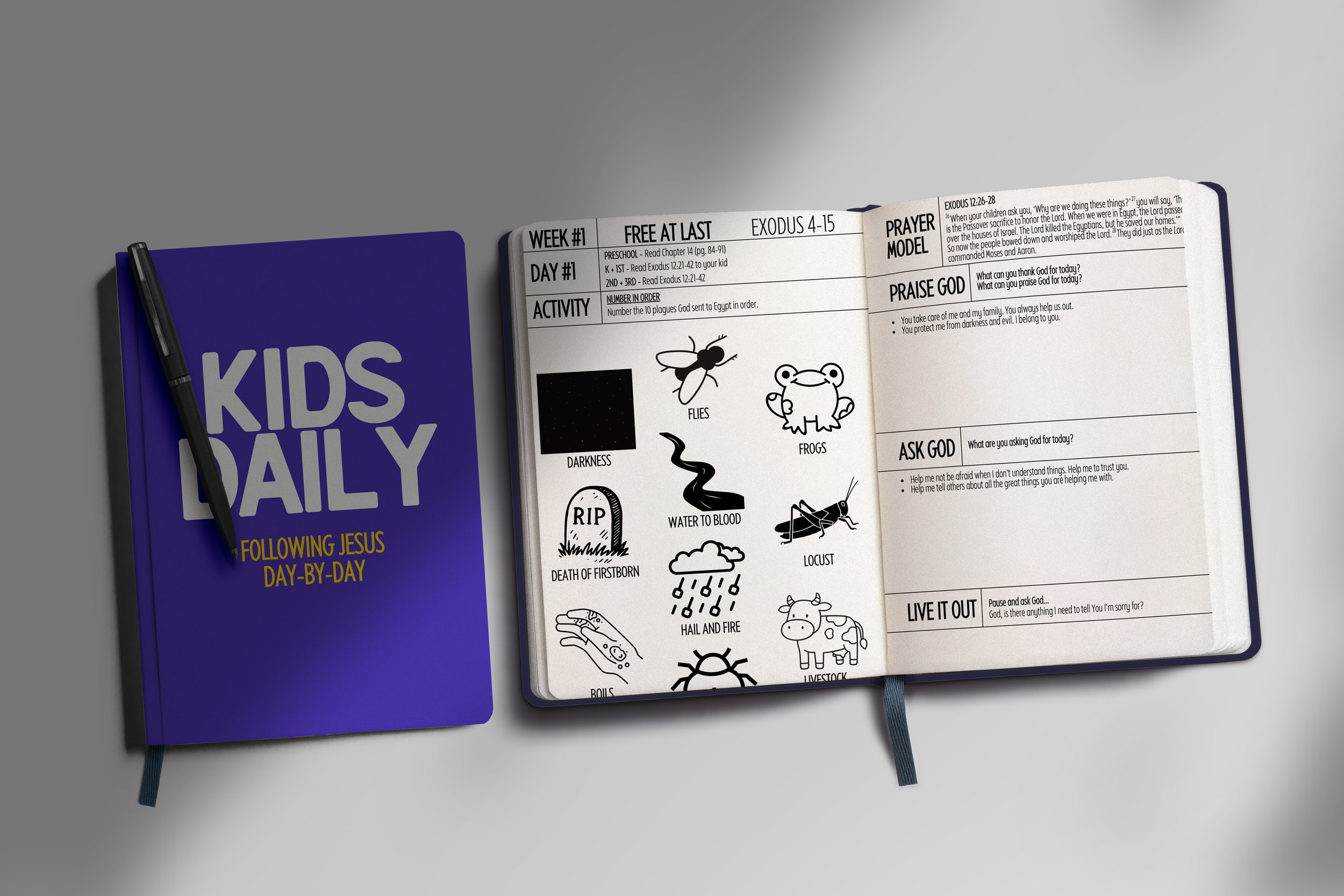 The Kids Daily Devotional Journal helps kids spend time with God every day. Each day includes a Bible verse, fun questions to think about, and space to write or draw what they’re learning. It’s designed to help kids grow in their faith and learn how to follow God in everyday life.